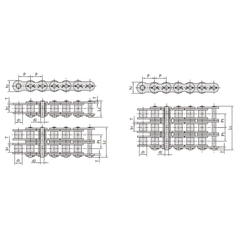 - Ефективність передачі:Оптимізована конструкція роликів і ланок для плавної та енергоефективної передачі потужності.