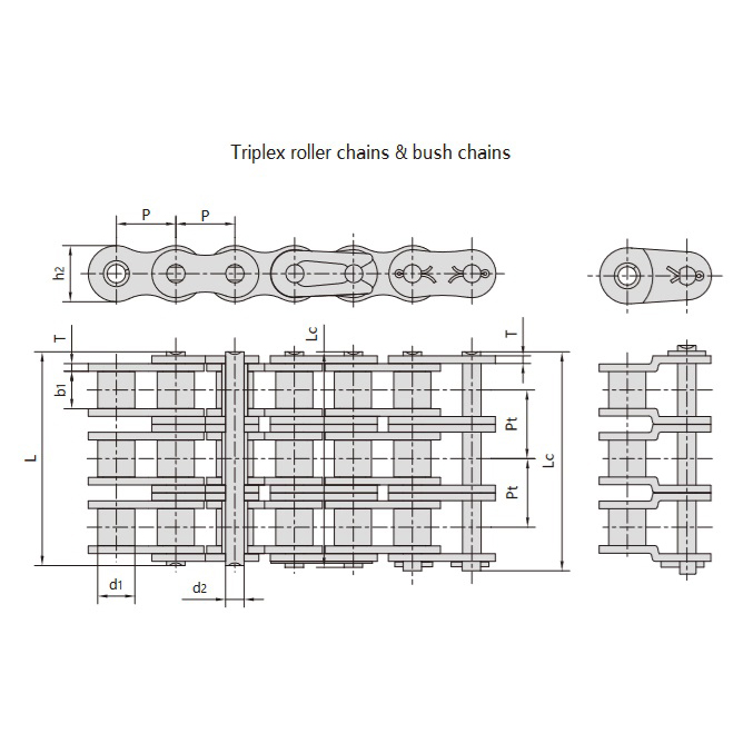 - Широкий діапазон розмірів кроку:Виготовляються з кроком від 6,35 мм до 76,2 мм, підтримують клепані або роз’ємні конструкції та одно-, багато- або трирядні ланцюги.