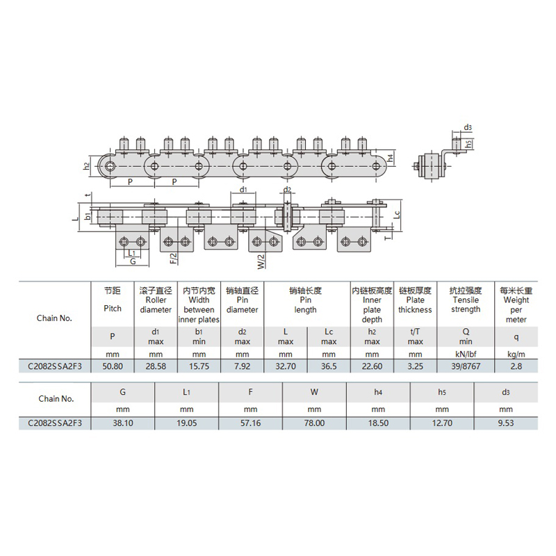 - Стабільна та ефективна робота:Оптимізована зірочка та опорна конструкція забезпечують стабільний рух ланцюга під великим навантаженням та на високій швидкості.