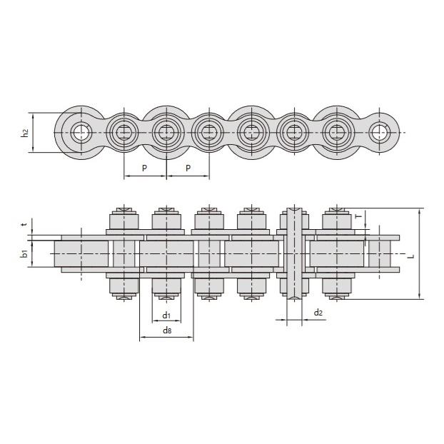 • Конструкція великого і малого роликів:Перший ролик має діаметр, більший за висоту внутрішньої ланцюгової пластини, виходячи своєю зовнішньою поверхнею за межі кінця ланцюгової пластини. Другий ролик менший, його діаметр менше висоти внутрішньої ланцюгової пластини.