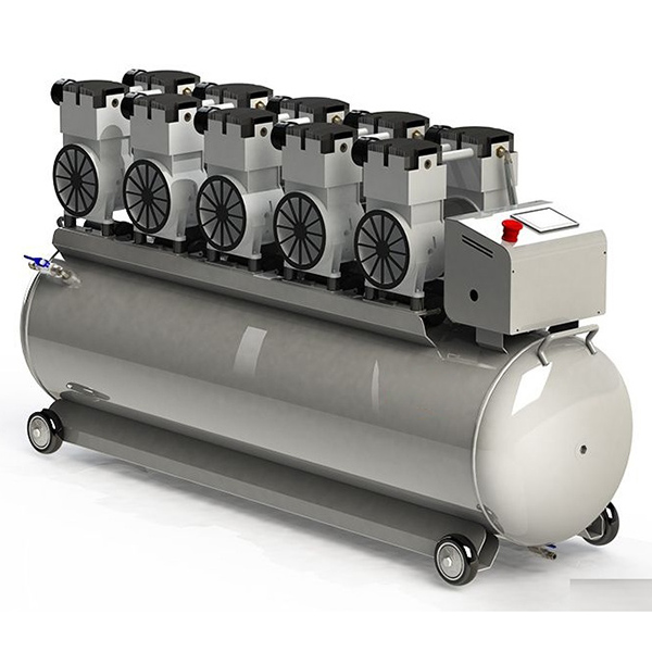 Він використовує технологію безмасляного змащення, щоб забезпечити, що вихідне повітря є безмасляним, сухим і чистим, що відповідає високим стандартам медичної галузі. Обладнаний системою автоматичного контролю, пристрій може точно вимірювати тиск, автоматично запускатися і зупинятися, щоб підтримувати стабільний тиск повітря, і широко використовується в різних сферах, таких як стоматологічне лікування, навчання і дослідження, лабораторії, прецизійні інструменти, фармацевтична промисловість, харчова промисловість тощо.