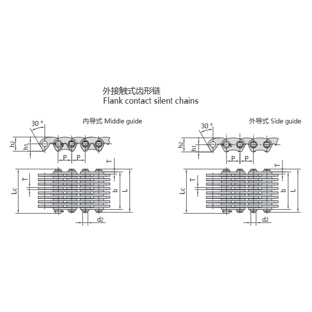 • Зубчаста ланцюг із внутрішнім і зовнішнім зачепленням:Поєднує переваги внутрішнього та зовнішнього зачеплення. Ідеально підходить для умов високої швидкості, змінної швидкості та змінного навантаження. Мінімізує полігональні ефекти, удари, вібрацію та шум, одночасно підвищуючи ефективність передачі.