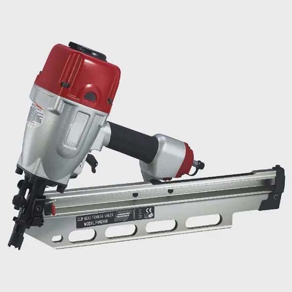 Принцип роботи пневматичного цвяхозабивача:Пневматичний цвяхозабивач працює на стисненому повітрі. При натисканні на спусковий гачок повітряний потік швидко надходить у циліндр, штовхаючи поршень вниз з великою швидкістю і приводячи в дію ударник, який забиває цвях у деревину. Потім вихлопна система випускає надлишок газу, щоб скинути поршень для наступного пострілу. Завдяки куту забивання 28° цвях входить у матеріал під кутом, що покращує стабільність з’єднання і зменшує ймовірність розколювання деревини. Конструкція з вибиванням дозволяє забивати цвяхи без відпускання спускового гачка, що значно підвищує ефективність.Області застосування пневматичного цвяхозабивача: