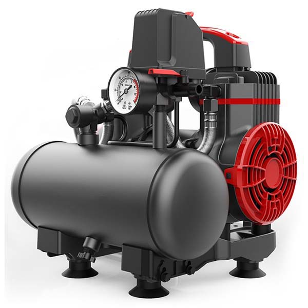 Портативний безмасляний повітряний компресор використовує технологію безмасляного поршневого стиснення. Електродвигун приводить в рух поршень, який стискає навколишнє повітря в резервуар для зберігання. Безмасляна конструкція запобігає забрудненню масляним туманом, забезпечуючи чисте повітря на виході. Після фільтрації стиснене повітря подається до пневматичних інструментів. Система повітряного охолодження ефективно знижує внутрішню температуру для безперервної роботи, а система захисту двигуна забезпечує автоматичне відключення в разі перевантаження або аномального напруги, захищаючи обладнання.