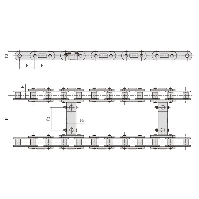 • Перший внутрішній ланцюг:Дві паралельні внутрішні ланки ланцюга з двома наборами роликів для плавного руху.
