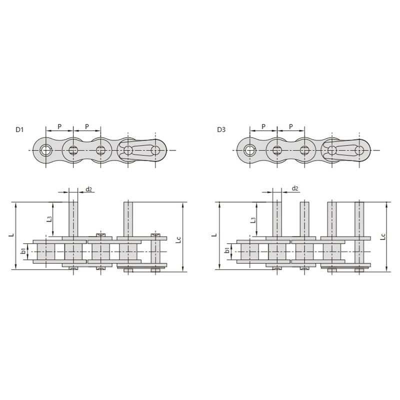 - Товщина ланок ланцюга та діаметр роликів можуть бути налаштовані відповідно до конкретних навантажень та умов роботи.