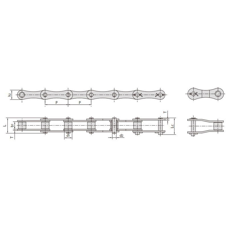 Технічна таблиця сталевих сільськогосподарських ланцюгів типу S